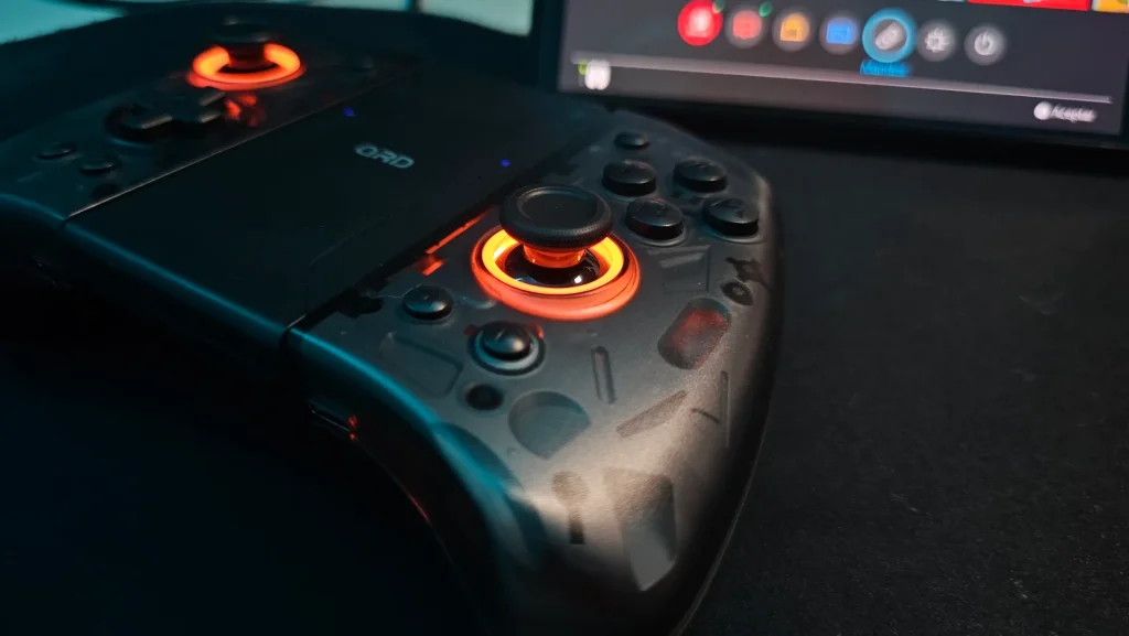El diseño del QRD Stellar T5 se ajusta perfectamente a las manos, brindando una comodidad similar a la de un Pro Controller. Además, integra luces LED RGB que puedes personalizar en 8 colores distintos para darle un estilo único a tu consola.